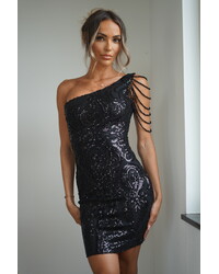 Emilia beaded detail sequin dress black