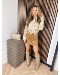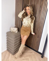 Zacht, stijlvol en helemaal van nu — deze suedine skort in de kleur camel is het perfecte fashion-item voor het nieuwe seizoen. De luxueuze suedine stof voelt heerlijk soepel aan en geeft je look direct een chique uitstraling.... Lees meer