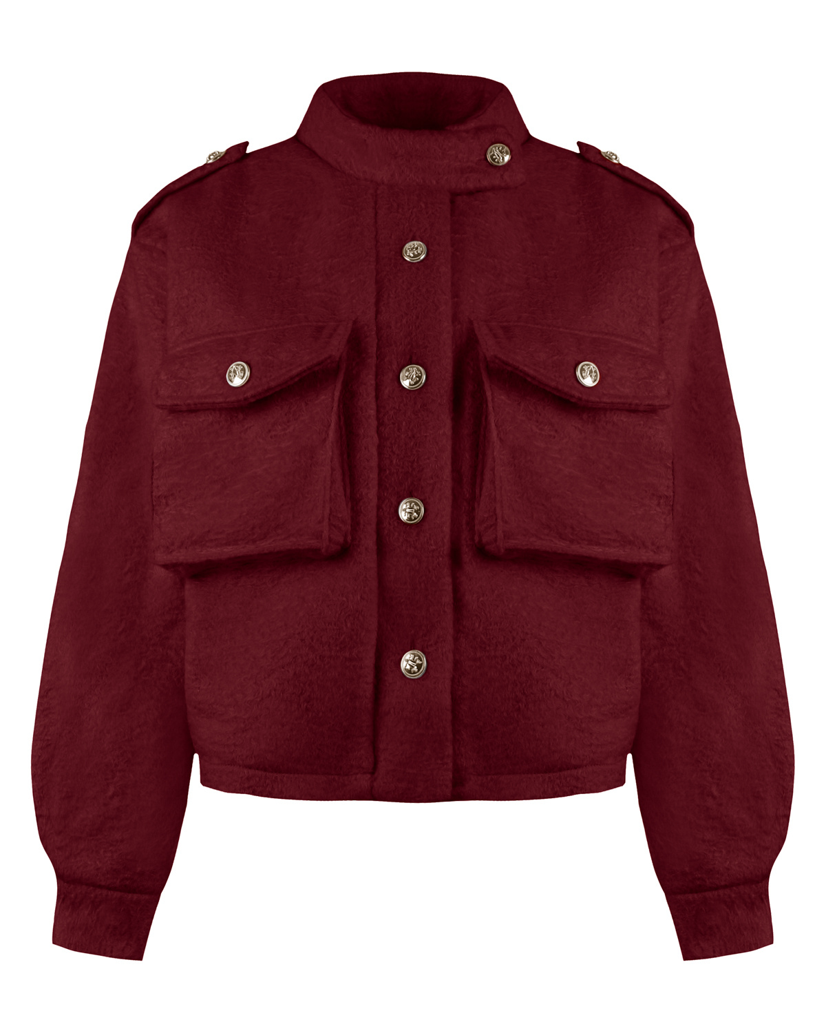 MUSTHAVE ITEM! Dit heerlijke Esmeralda jasje is gemaakt van een warme fluffy stof perfect voor de koudere dagen dus. Door de gouden knopen heeft hij wel een chique look.