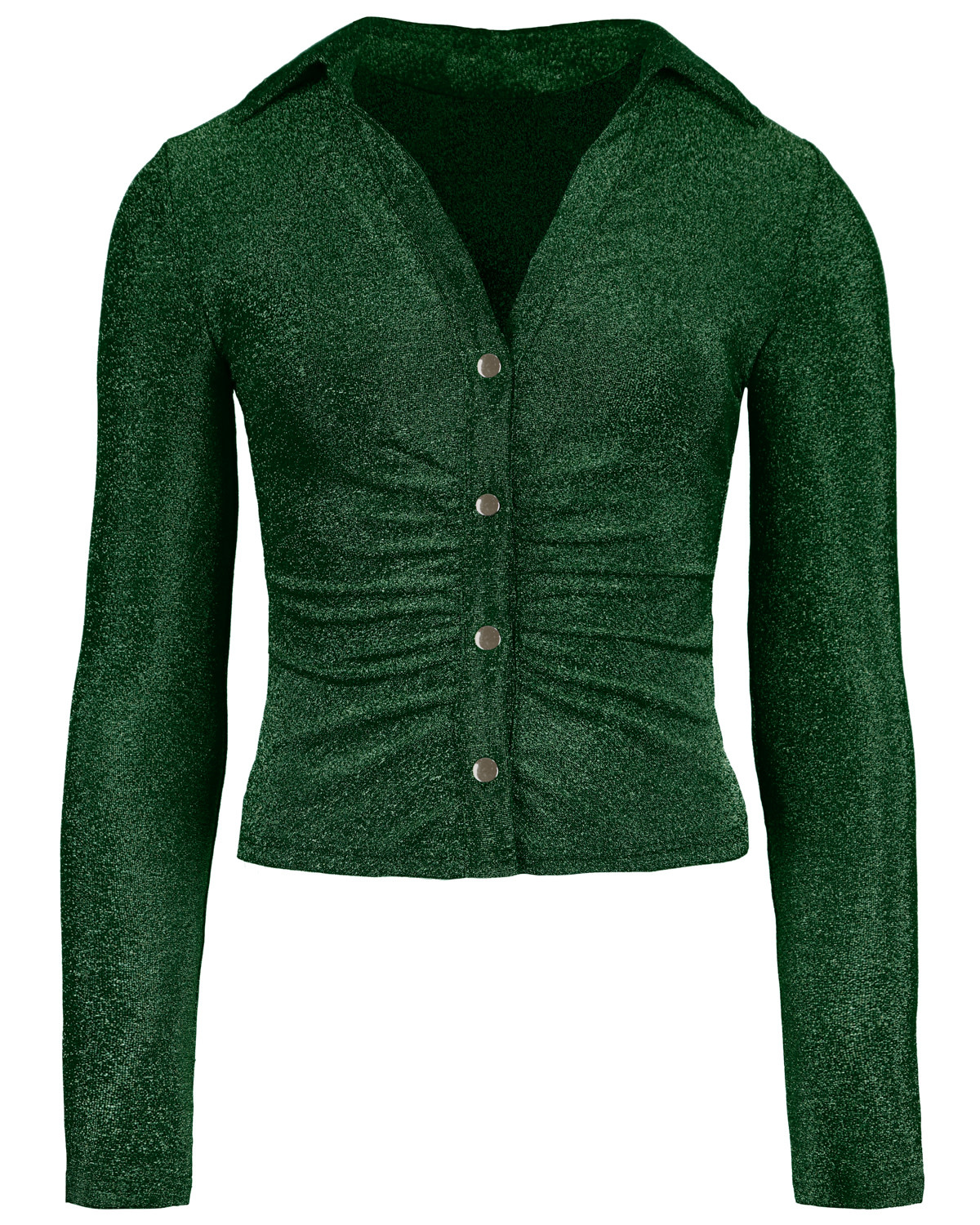 SPARKLE LOVE! Hoe leuk is deze cropped blouse?! In de taille sluit de blouse aan door het ruched effect. De stof van de blouse heeft een prachtige glitter.... Lees meer