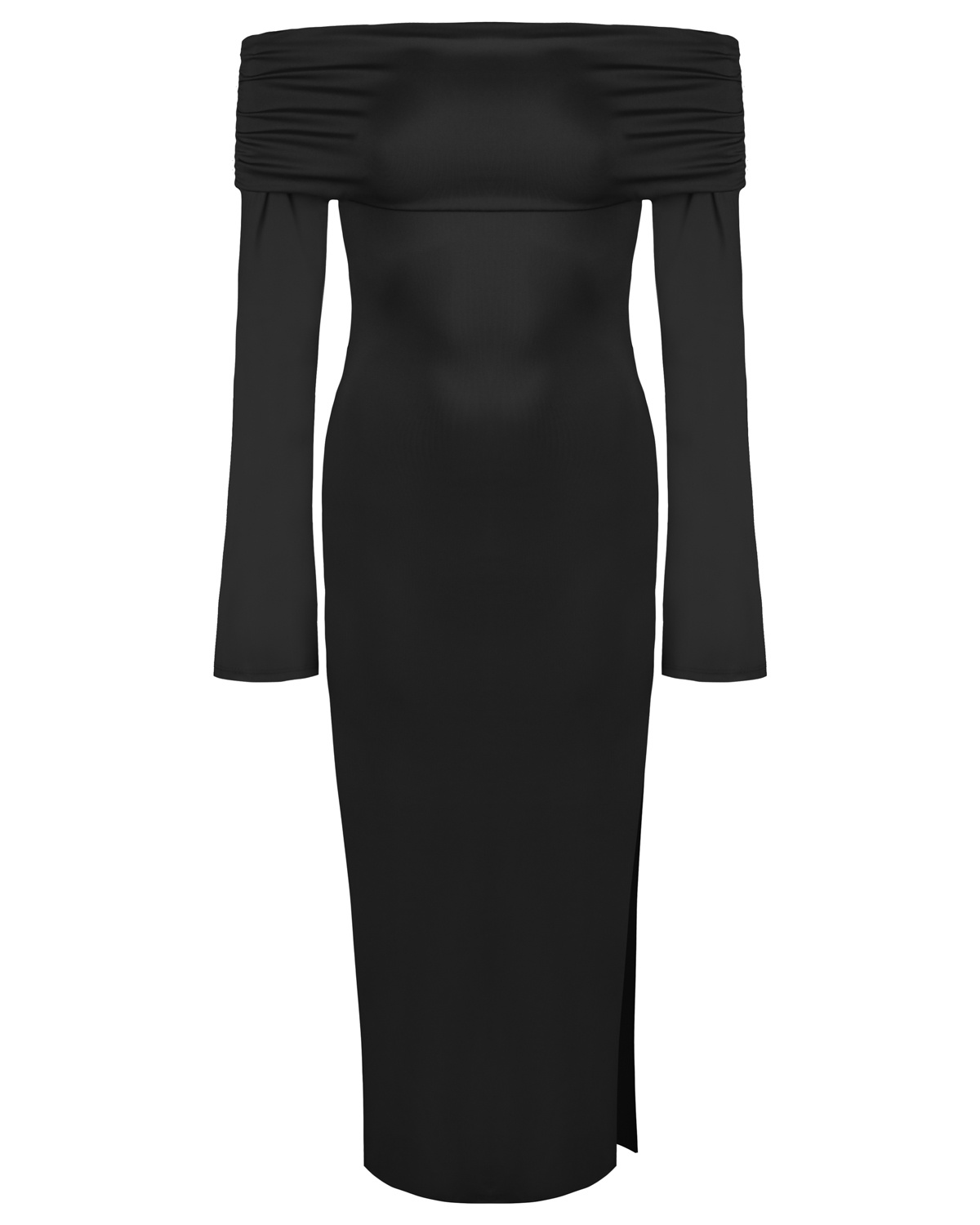 TRAVEL LOVE! De Eve jurk is gemaakt van een heerlijke stretch stof waardoor hij super comfy zit. De jurk heeft een off shoulder fit, uitlopende mouwen, maxi lengte en split aan de rechterzijde.... Lees meer