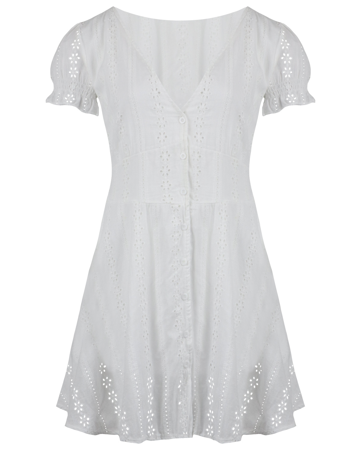 SUMMER VIBES! Dit jurkje is perfect voor de zomer dagen. Door de taille band sluit hij mooi aan en is hij super flatterend. De jurk heeft een knoopjes sluiting van boven tot beneden.