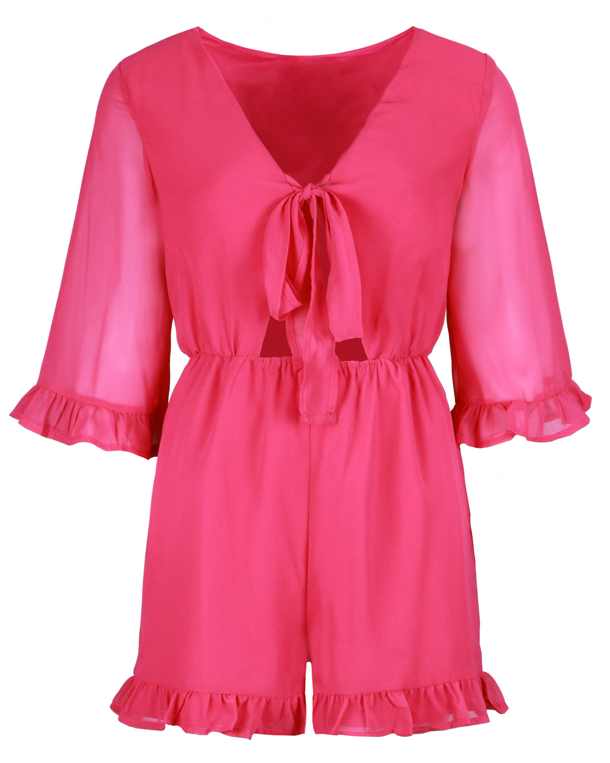 KNOT DETAIL! De Frankie playsuit heeft bij de borst een klein knoop detail, helemaal on trend! Bij de mouwen en aan de onderkant van het broekje zit een klein ruffle randje.... Lees meer