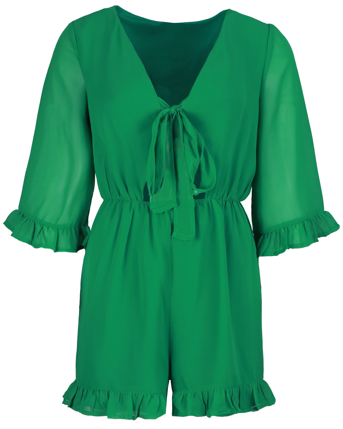 KNOT DETAIL! De Frankie playsuit heeft bij de borst een klein knoop detail, helemaal on trend! Bij de mouwen en aan de onderkant van het broekje zit een klein ruffle randje.... Lees meer