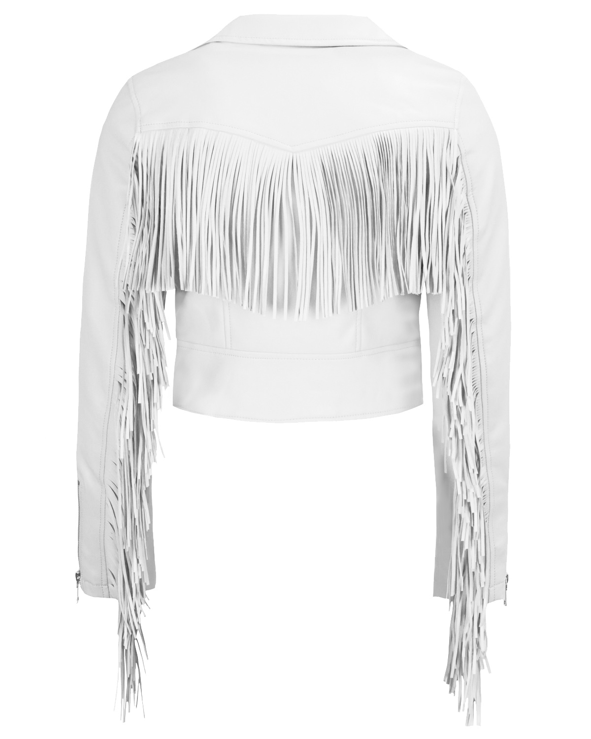 FRINGE DETAIL! Hoe leuk is dit leren jasje met fringe detail op de rug?! Een echte musthave als je het aan ons vraagt. Draag hem als jasje of als blazer in de winter.