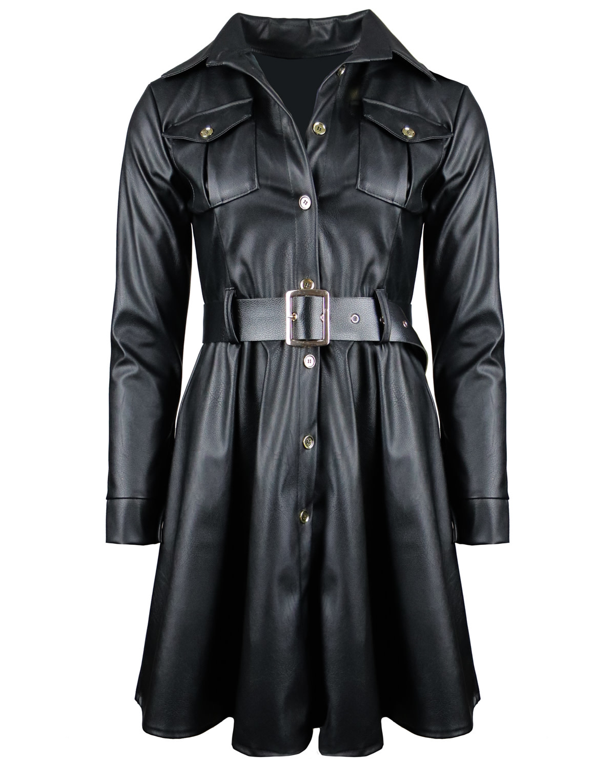 LEATHER MUSTHAVE! Een mooie vegan leren jurk mag echt niet ontbreken in jouw garderobe. De Gabriella jurk komt met een ceintuur en heeft 2 borstzakjes. Prachtig met hakken of stoere boots.