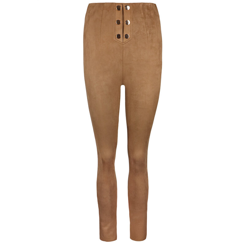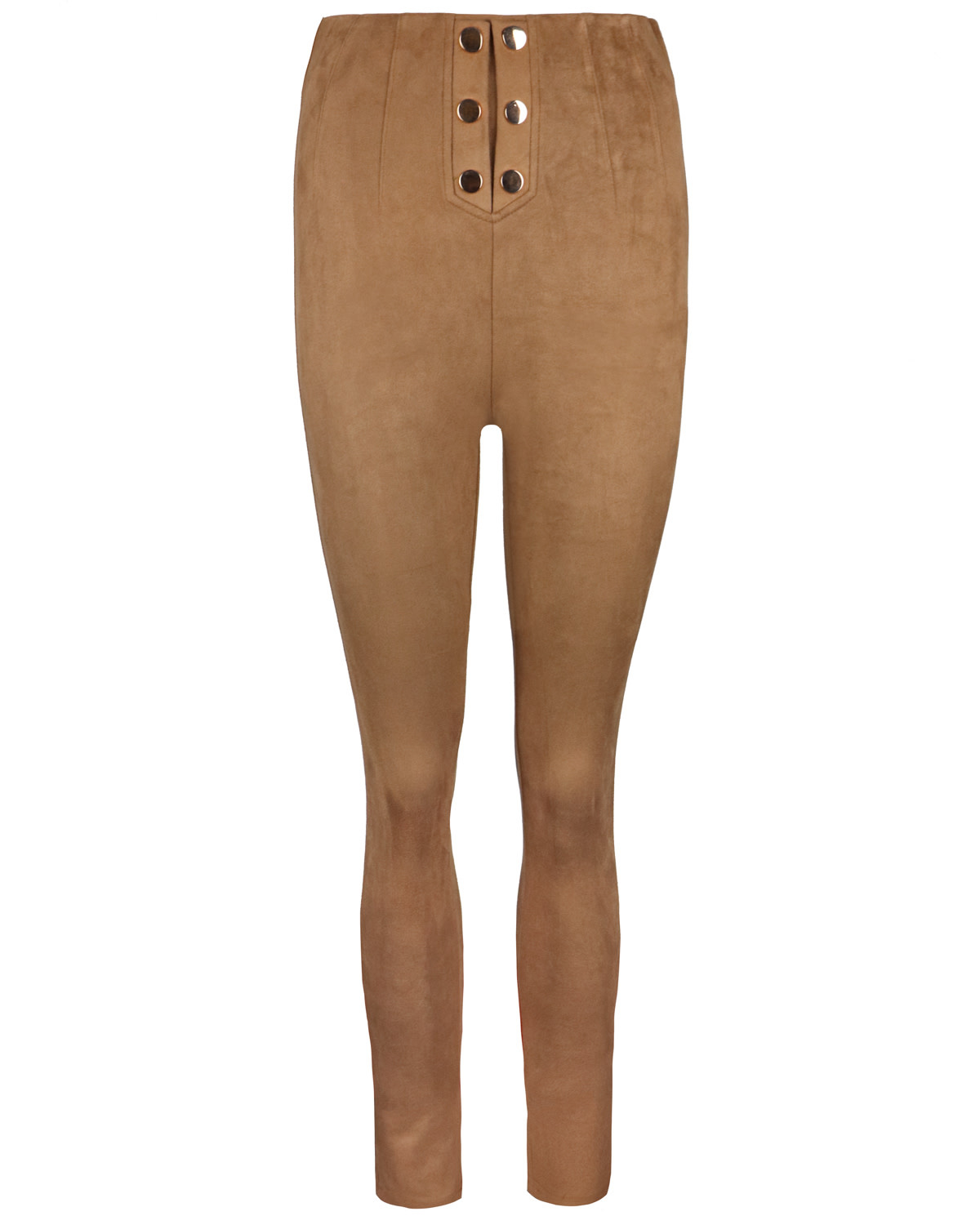 GOLD BUTTONS! Deze heerlijke stretch legging is in suede stof met aan de voorkant gouden knoopjes. Perfect te combineren met verschillende tops.... Lees meer