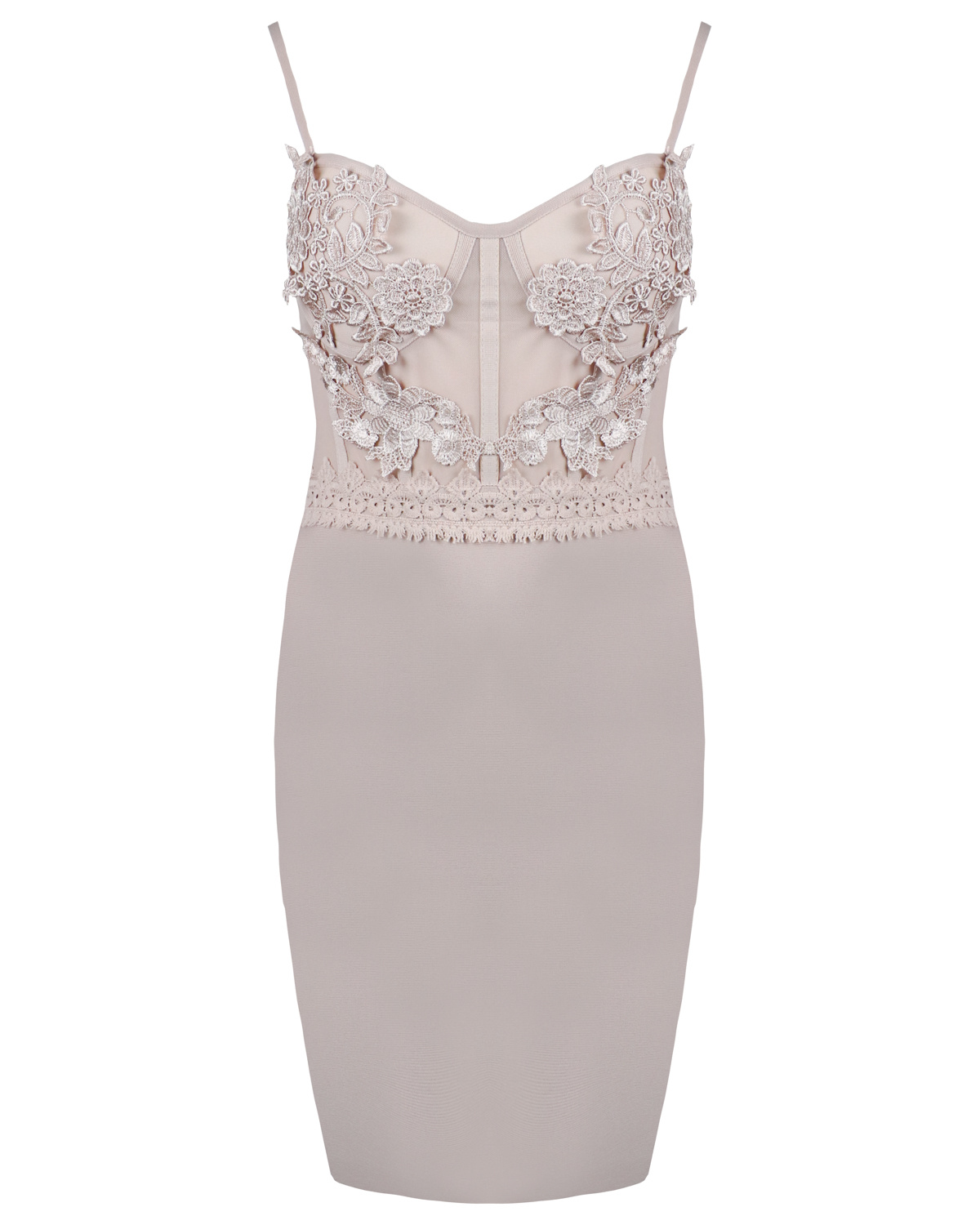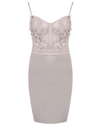 LACE DETAIL! Deze prachtige jurk is gemaakt van bandage stof waardoor hij prachtig naar het lichaam vormt. De top van de jurk is gemaakt met mesh met kanten details. Door de cups kan de jurk zonder bh gedragen worden.... Lees meer