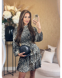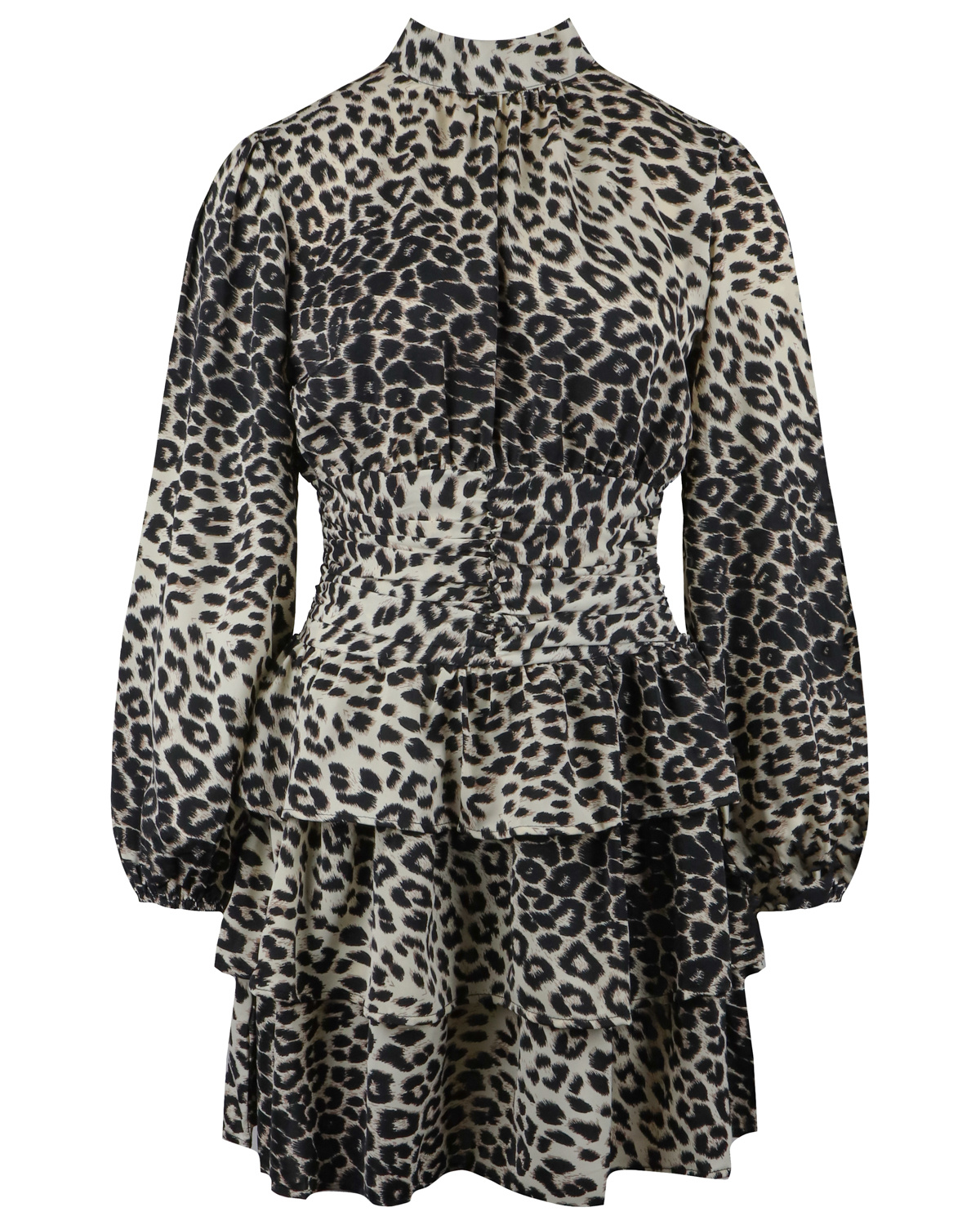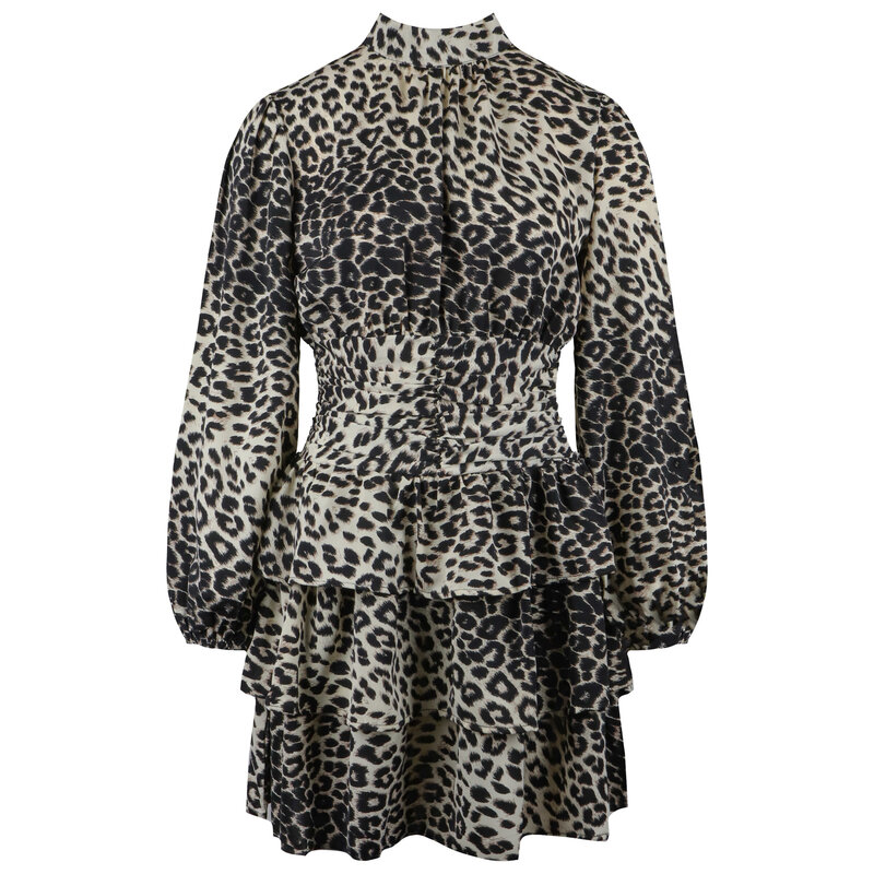 PRINT LOVE! De Indie jurk heeft een prachtige luipaard print. De jurk heeft een hoge hals en geplooide details in de taille wat zorgt voor een afslankend effect. Combineer de jurk met high heels of boots om de look af te maken.... Lees meer