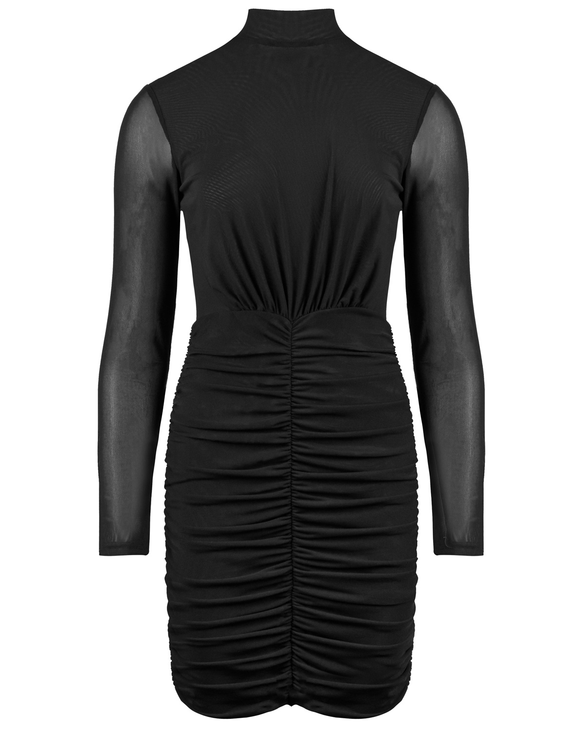 MUSTHAVE ALERT! De Indigo jurk is gemaakt van een heerlijke stretch mesh stof waardoor hij super comfy zit. De jurk heeft een hoge hals, plooi effect en doorschijnende mouwen.