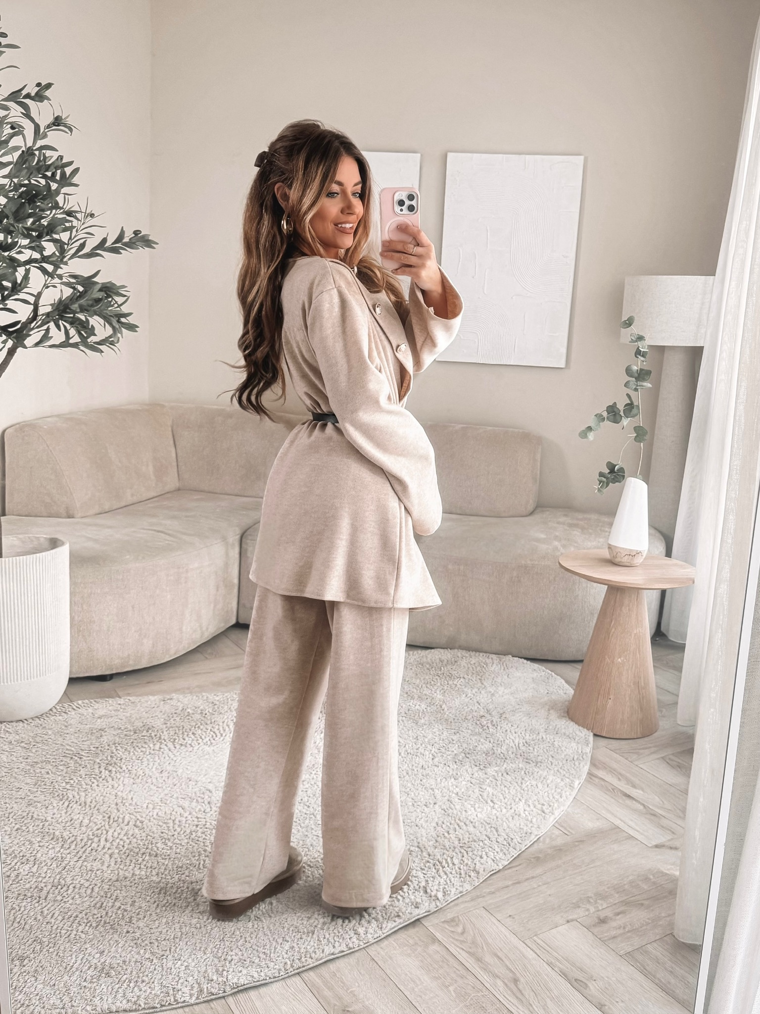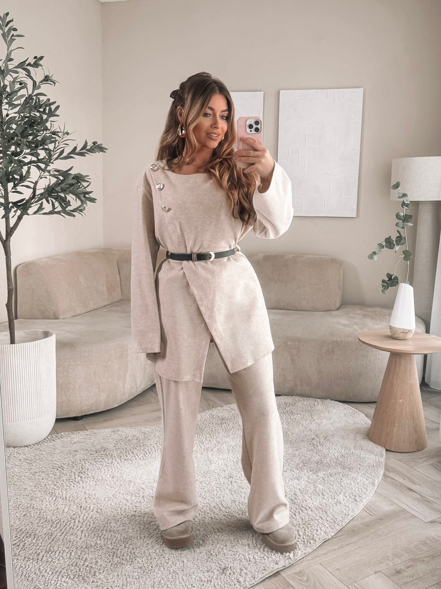 De Indy comfy set is een stijlvolle set met wijde broek en asymmetrische top. Chic afgewerkt met knopen en ceintuur. Perfect voor relaxed én elegant dragen.... Lees meer