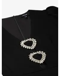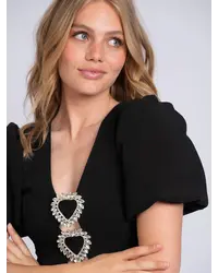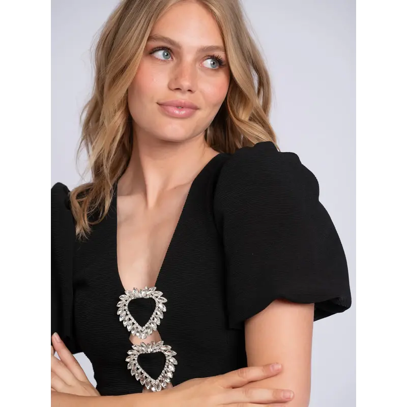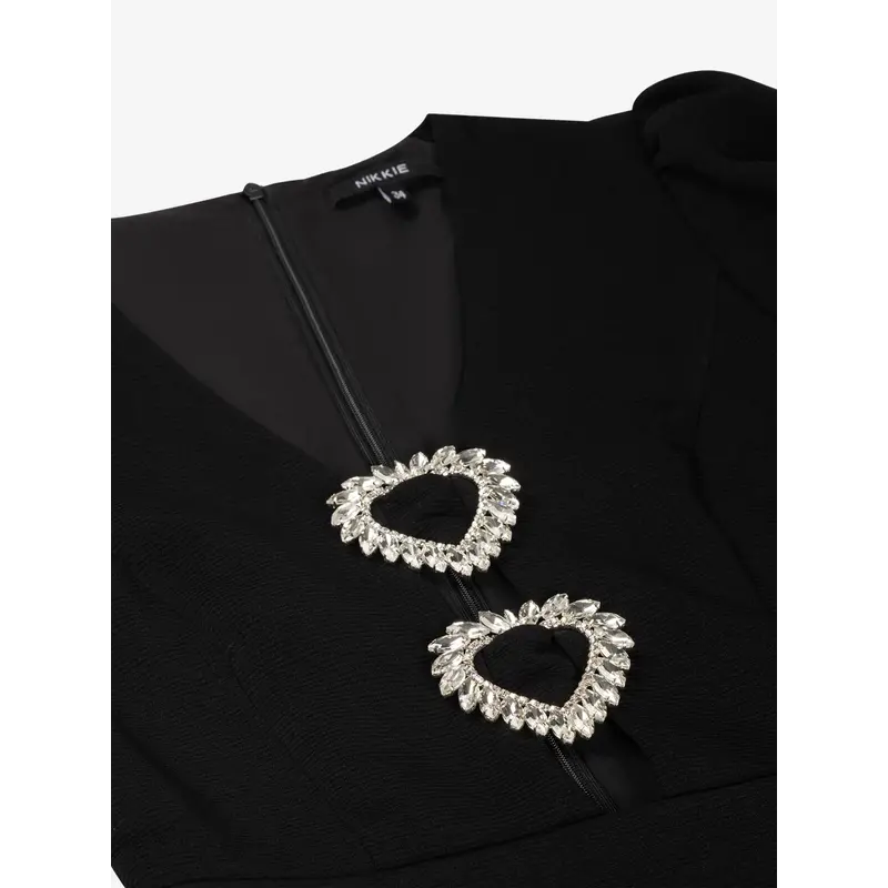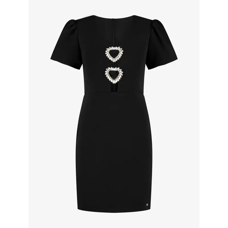 Aansluitende jurk met een diepe V-hals, korte pofmouwen en hartvormige details van strass steentjes aan de voorkant. De jurk heeft een subtiel cut-out detail, een licht geribbeld patroon en een ritssluiting.... Lees meer