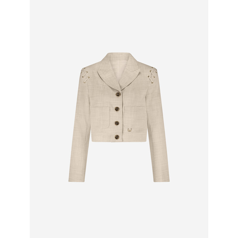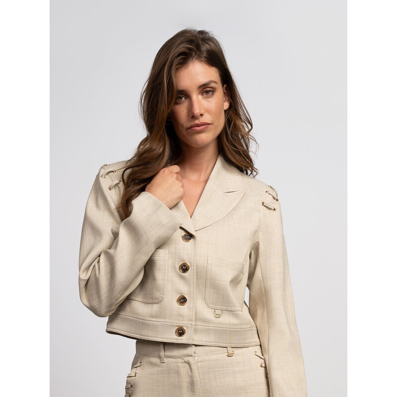 Kort, gemêleerd jack met een reverskraag, een knoopsluiting en decoratieve koorddetails. Het jack is voorzien van zakken en een wijde pasvorm.... Lees meer