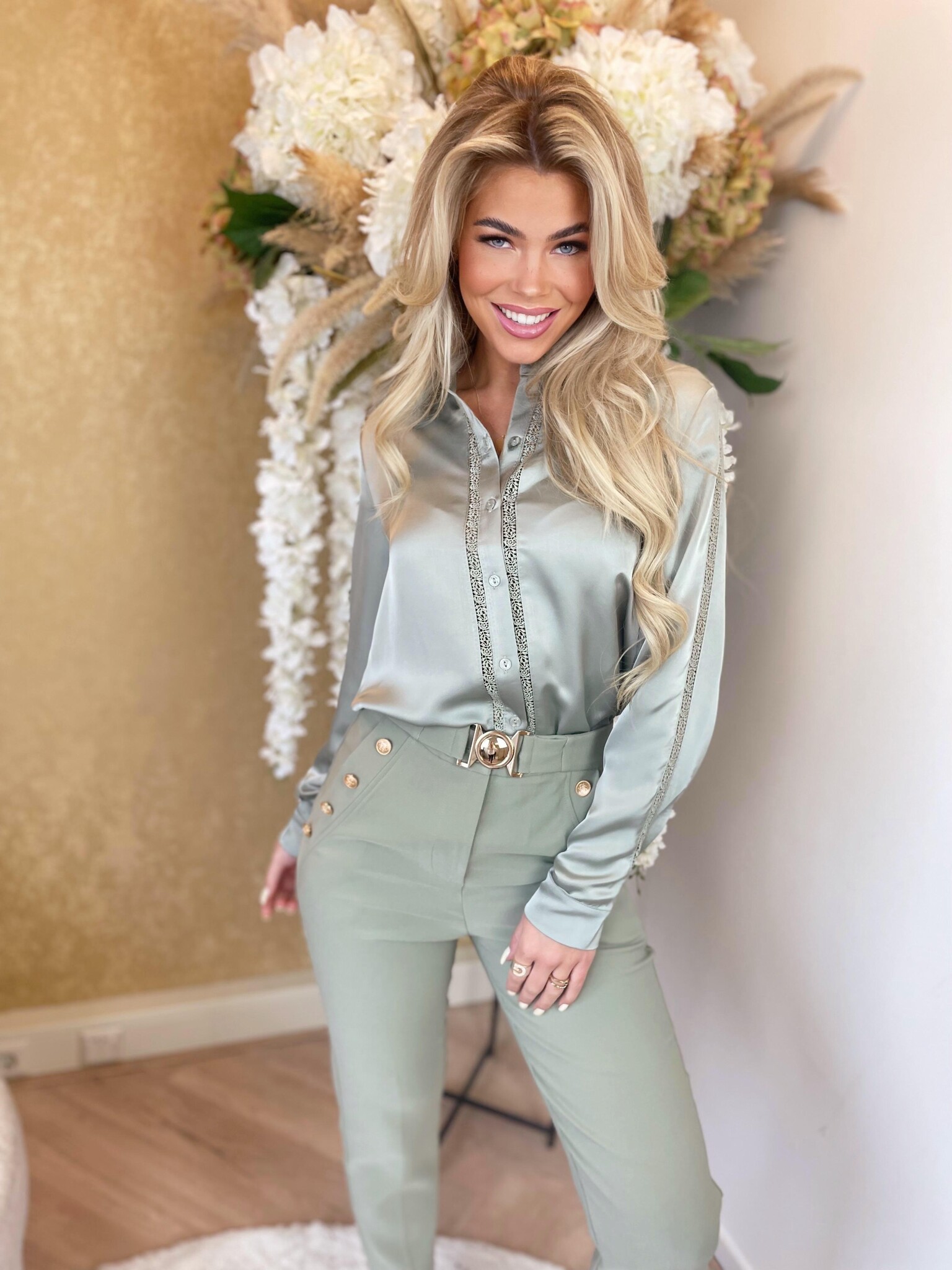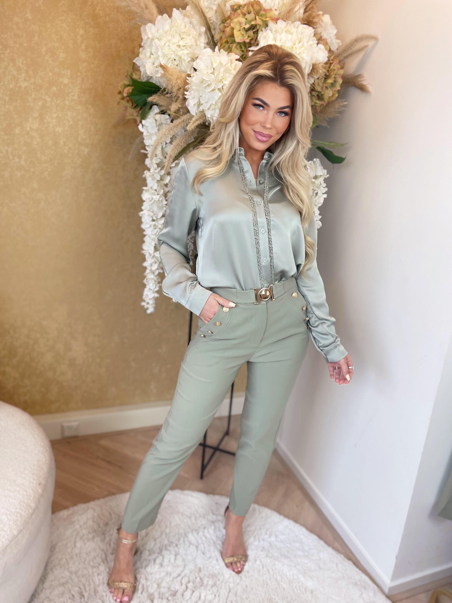 PERFECT BASIC! De Janelle pantalon kan eindeloos gecombineerd worden! De pantalon heeft een slim fit gecombineerd met gouden knopen en een buckle in de taille.... Lees meer
