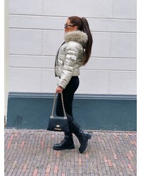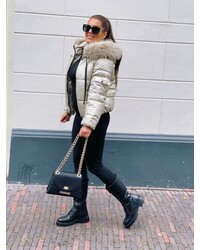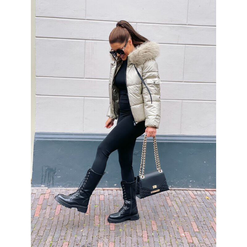PRE ORDER: verzending. maandag 3 november. FALL MUSTHAVE! Hoe leuk is onze Josje metallic jas?! De jas heeft een faux fur capuchon, 2 steekzakken, mouwwarmers en een zakje met drukknoopsluiting op de linkerarm.... Lees meer