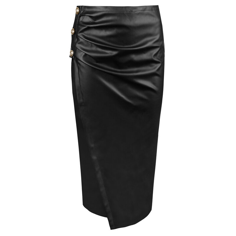 GOLD BUTTONS! Een leren rok mag niet ontbreken in jouw garderobe. De Julia rok heeft een split gecombineerd met gouden knopen en een geplooid effect.... Lees meer