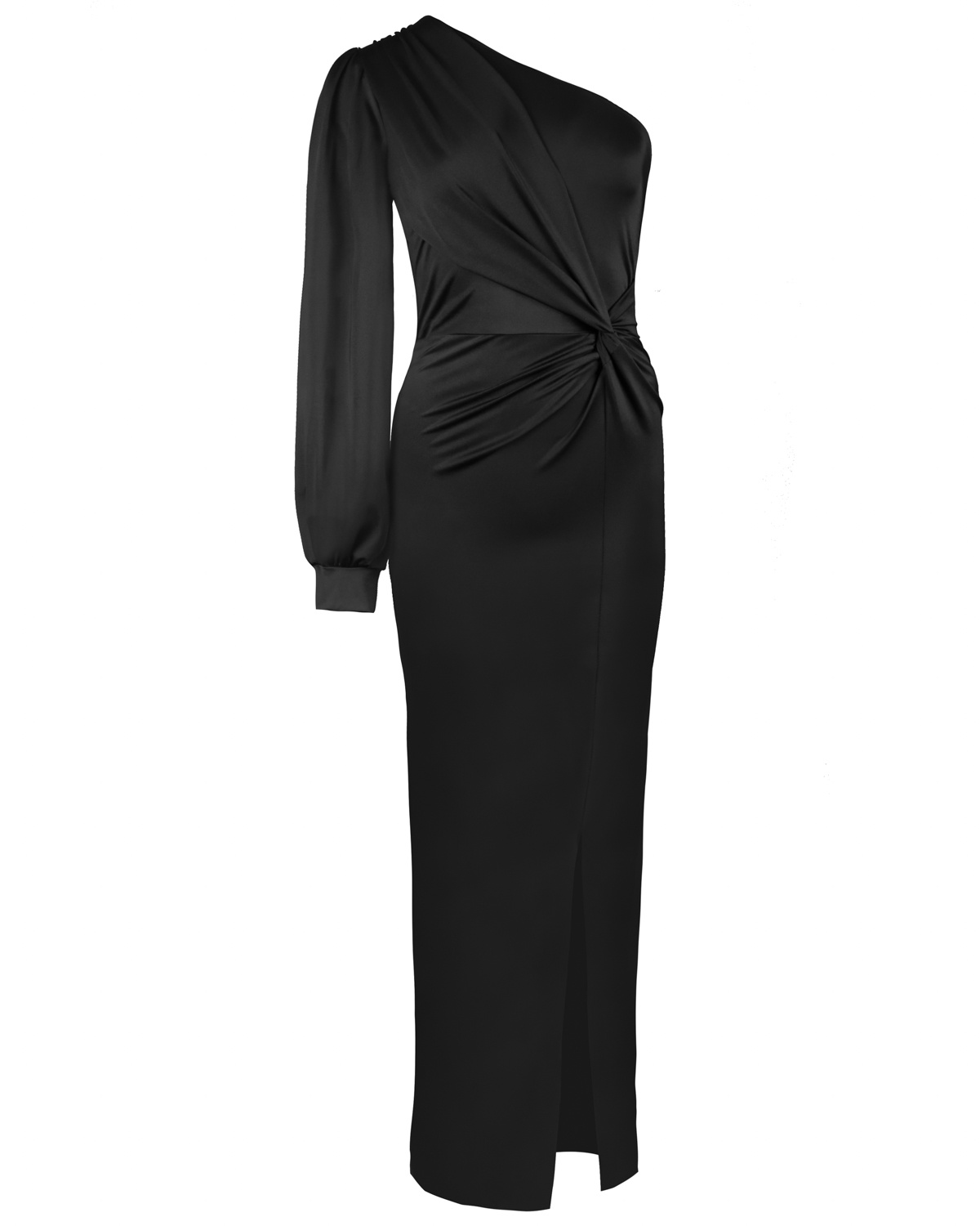 SILK LOVE! Hoe geweldig is deze nieuwe Kailani jurk. De jurk is gemaakt van een glanzende stretch stof. De jurk heeft een maxi lengte, one shoulder fit, geplooid effect en een split op het linkerbeen.