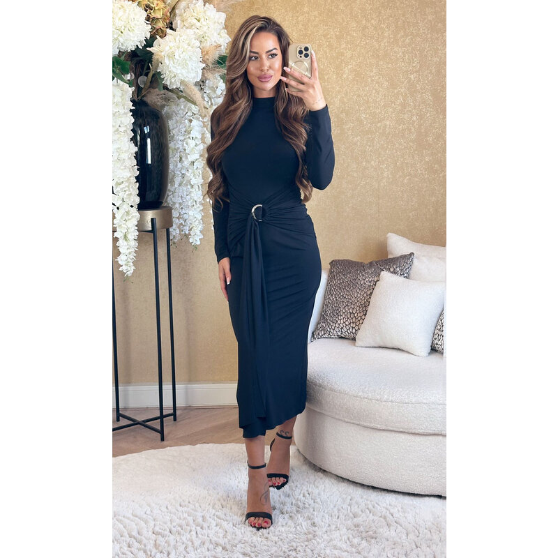 MUSTHAVE ALERT! Deze prachtige jurk heeft een echte chique look. De Kaliyah jurk is gemaakt van een stretch stof, heeft een maxi lengte, gouden buckle en geplooide details.... Lees meer