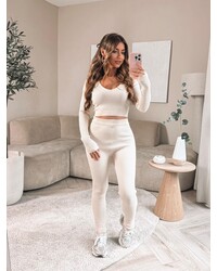 COMFY MUSTHAVE! Door de stretchy stof zit dit pakje heerlijk comfortabel. De set komt met een aansluitende legging en cropped top met v-hals.... Lees meer