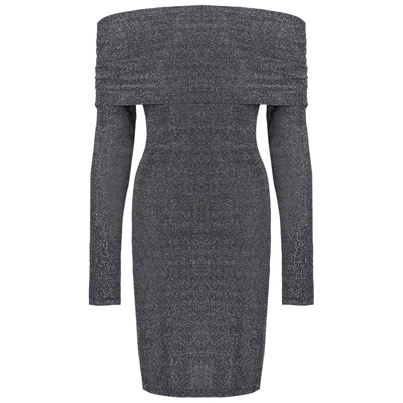 JAIMY Kehlani off shoulder sparkle dress silver