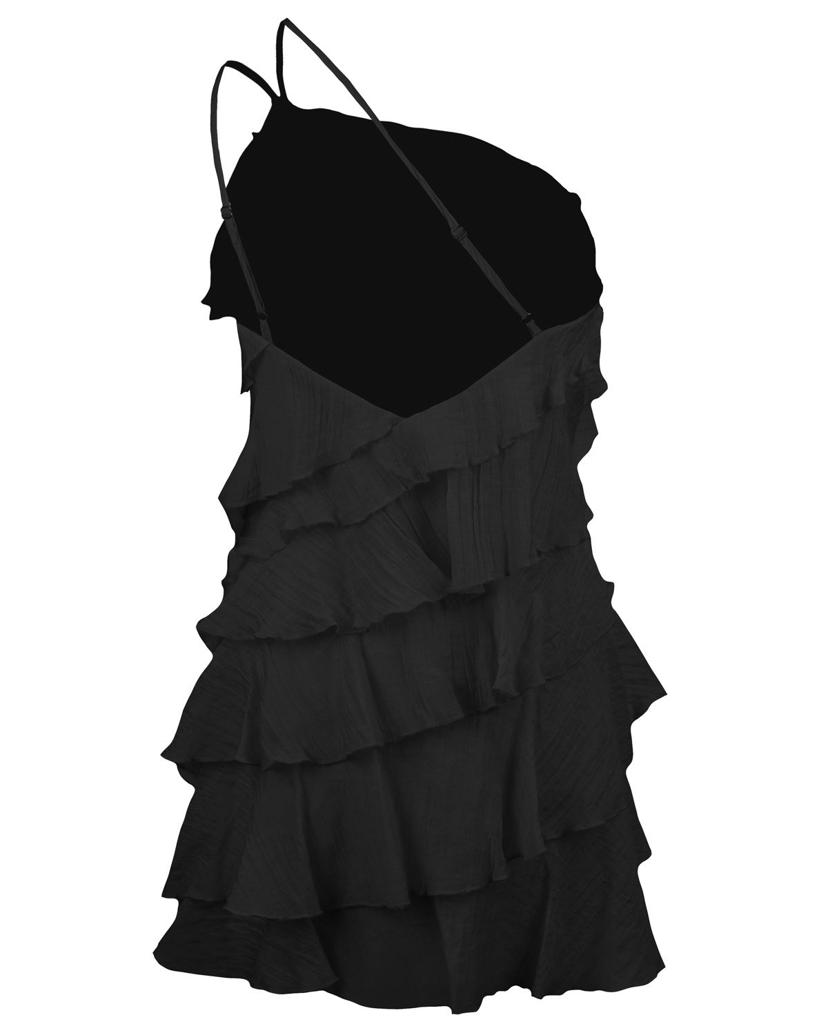 RUFFLE LOVE! De prachtige Keira jurk is gemaakt van allemaal verschillende laagjes. Perfect voor een feestje of zwoele zomer dag. De jurk heeft een one shoulder fit met dubbel bandje.