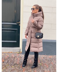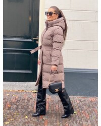 JAIMY Khloe belted puffer jacket taupe