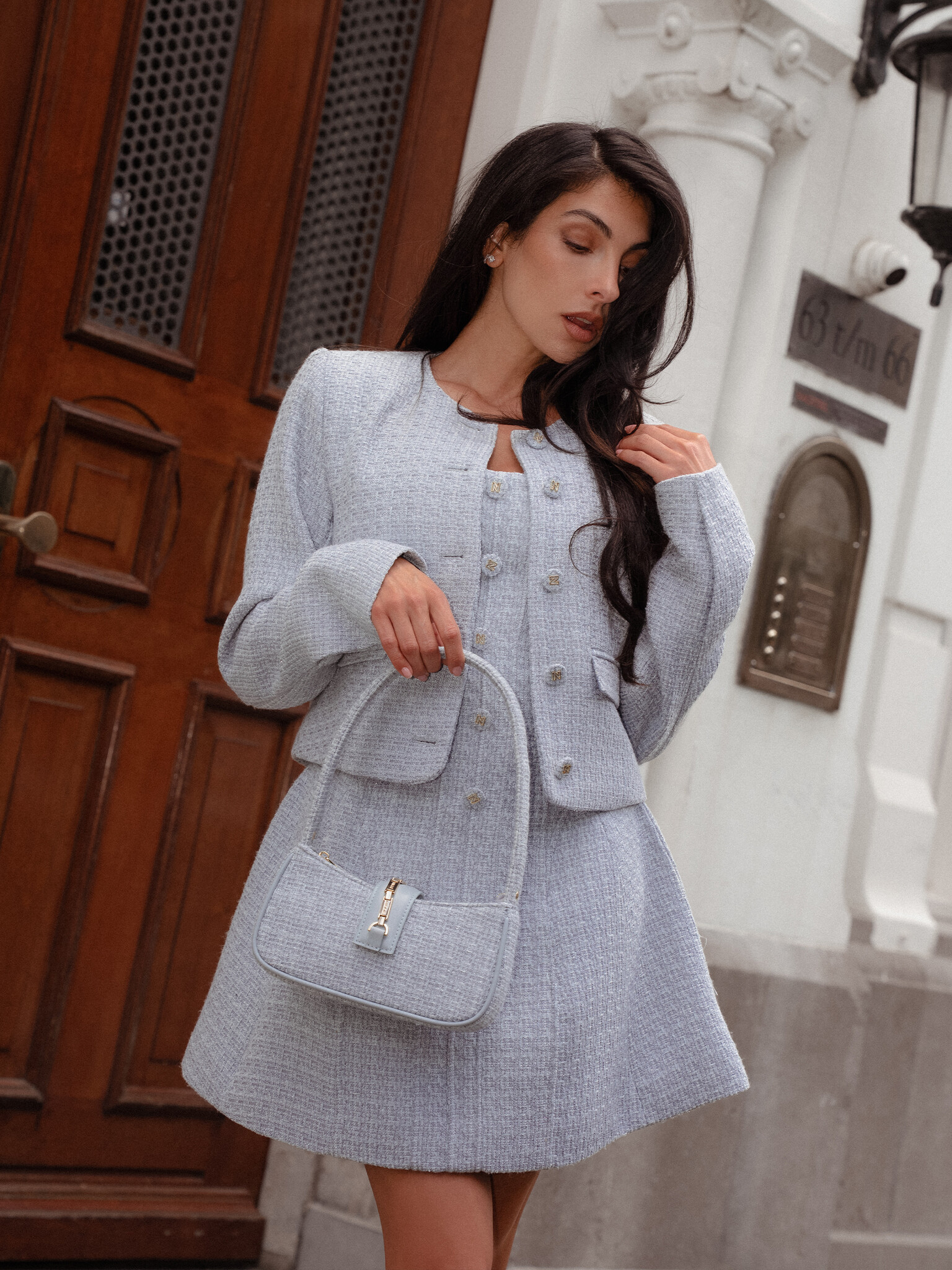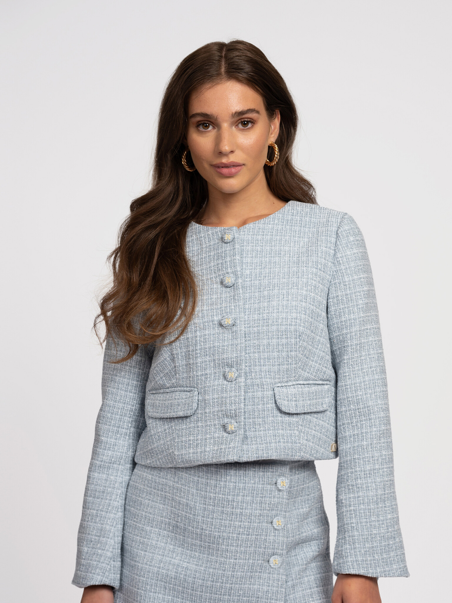 Kort tweed jack met een ronde hals, een knoopsluiting en normale pasvorm.... Lees meer