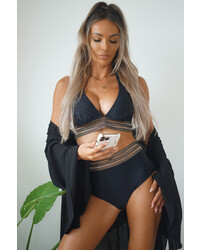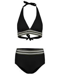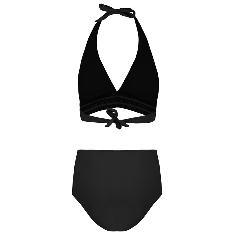 MESH DETAIL! De Kylee bikini heeft mesh details met een gouden patroontje bij de top en het broekje. De halter top heeft knoop bandjes waardoor hij goed aansluit. Het broekje heeft een high waisted fit... Lees meer