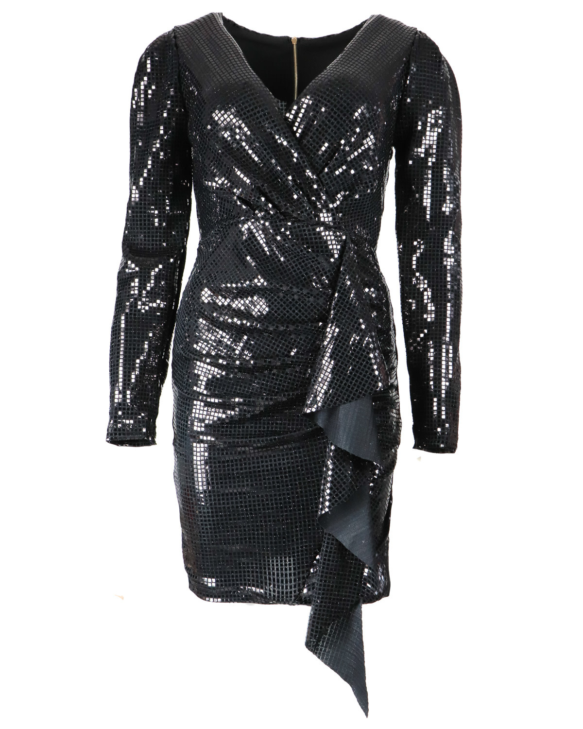 SHINE BRIGHT! In deze jurk ben jij zeker degene die glinstert. Door de ruches en v-hals is de jurk super flatterend! De Kyra heeft een extra leuk speels effect. De perfecte jurk voor de feestdagen.