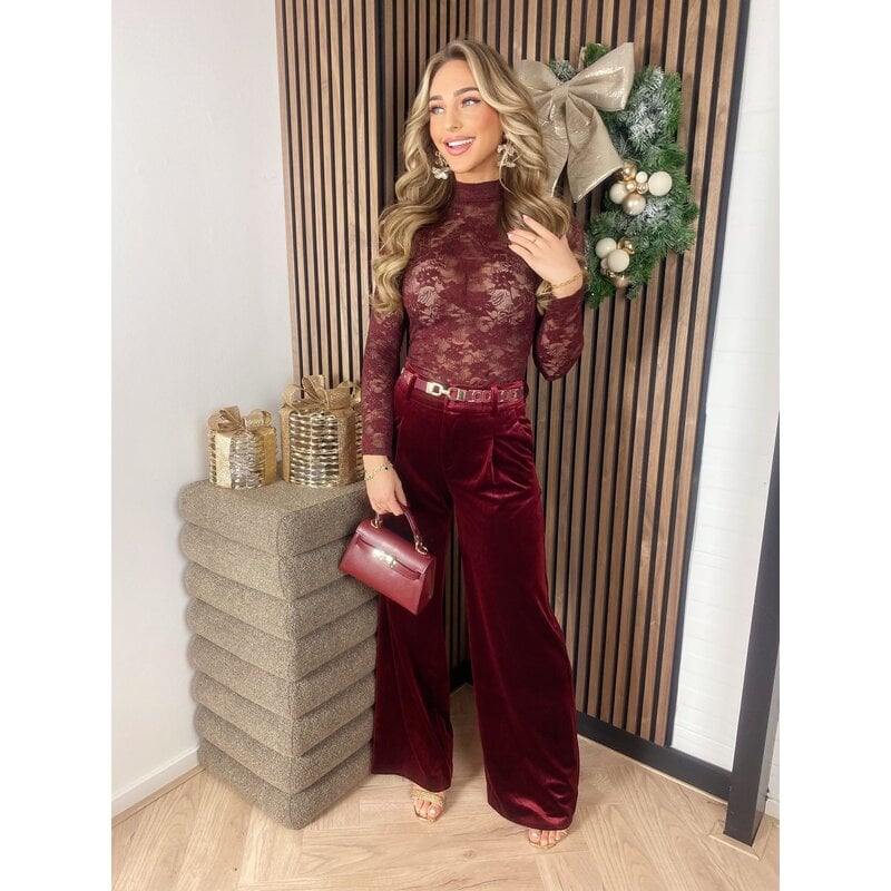 LACE LOVE! Deze LACE ROYALE top van kant is dé perfecte mix van elegantie en allure. Perfect voor een avondje uit of een dag op kantoor. Maak de look compleet en combineer met deze Velvet de Bordeaux Blazer en Velvet de Bordeaux pantalon.... Lees meer