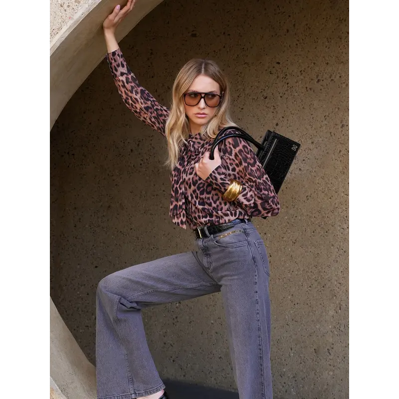 Blouse met luipaardprint, een kraag en een strikdetail bij de hals. De blouse is voorzien van een knoopsluiting en een normale pasvorm.... Lees meer