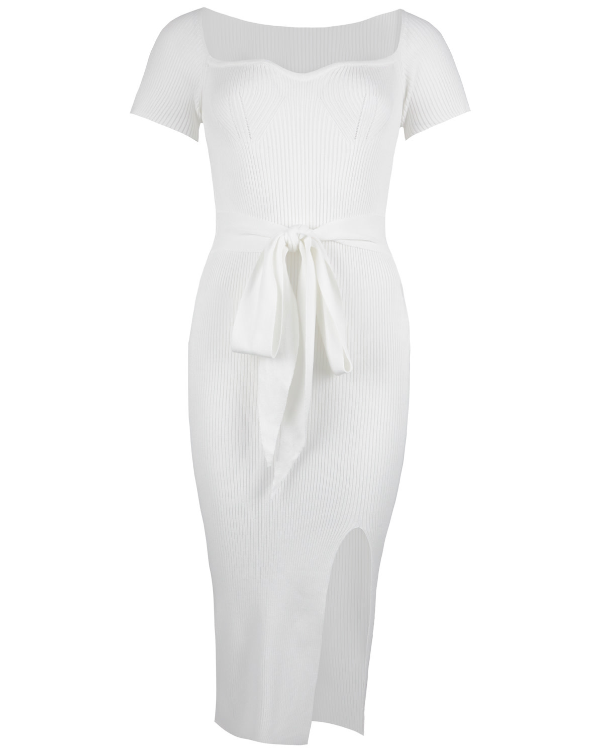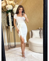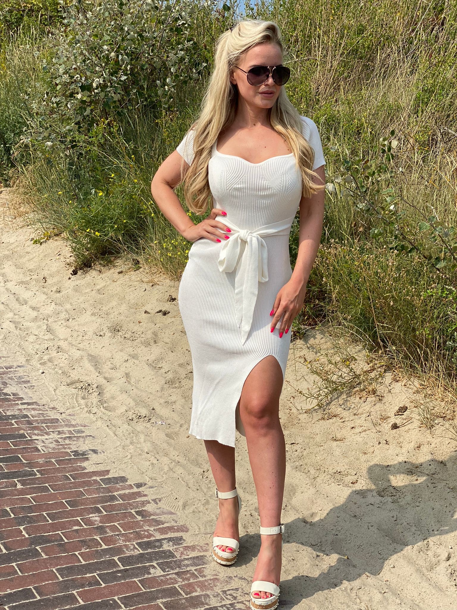 De Lillian dress is een midi lengte dress met een prachtige neckline. Hij is afgewerkt met een mooi detail bij de borst. Bij het linkerbeen zit een split en in de taille is een ceintuur die voor of achter geknoopt kant worden.