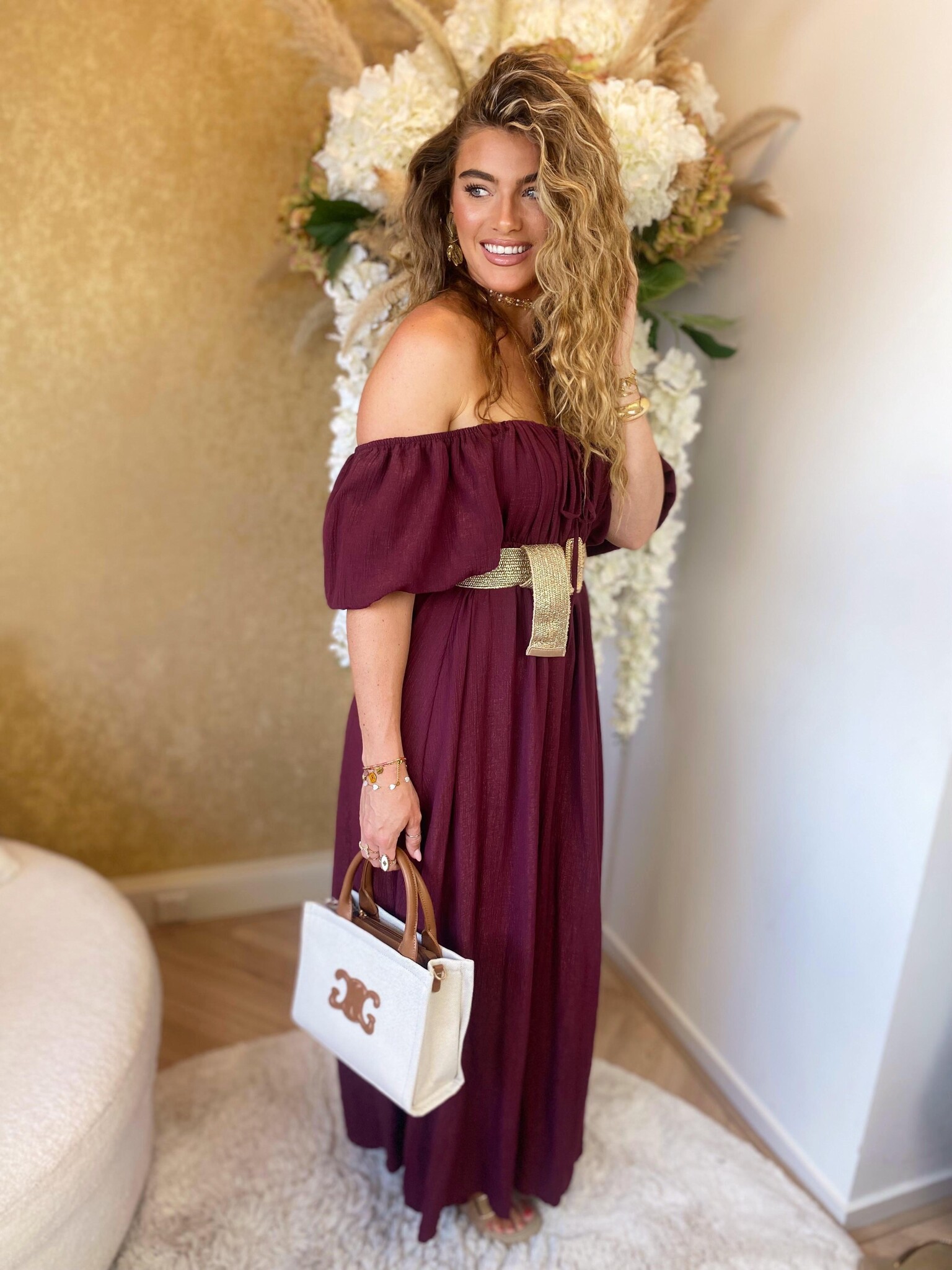 JAIMY Lilo linnen off shoulder dress bordeaux