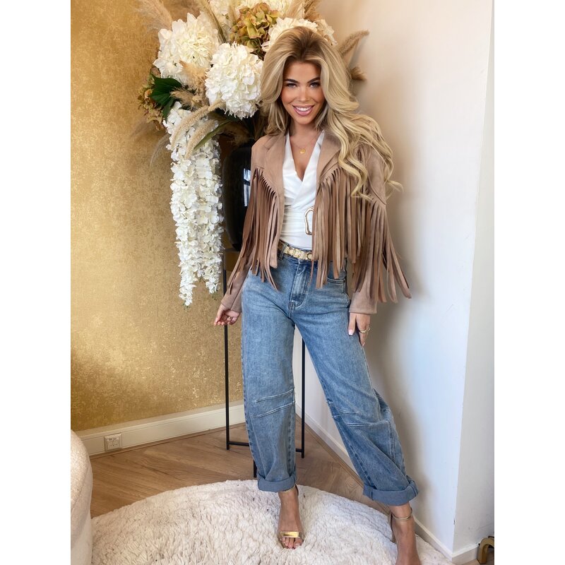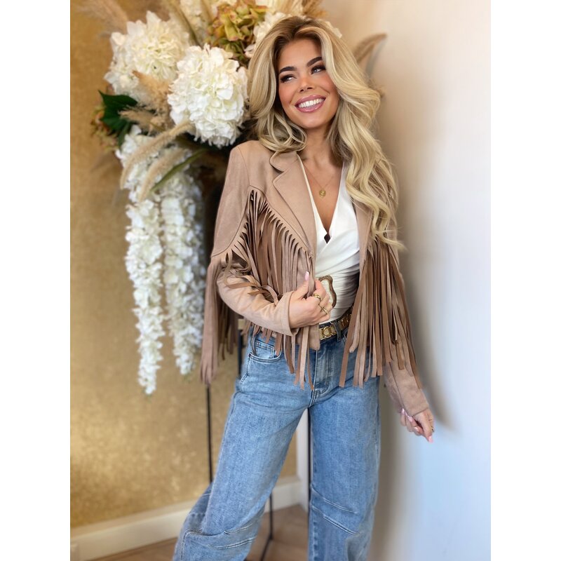 Suede is een echte herfst trend! Dit jasje heeft een mooie suede stof en leuke detail franjes. Het perfecte jasje om je look mee af te stylen.... Lees meer