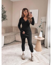 COMFY MUSTHAVE! Door de stretchy stof zit dit pakje heerlijk comfortabel. De set komt met een aansluitende legging en een top kraag en split aan de zijkant.... Lees meer