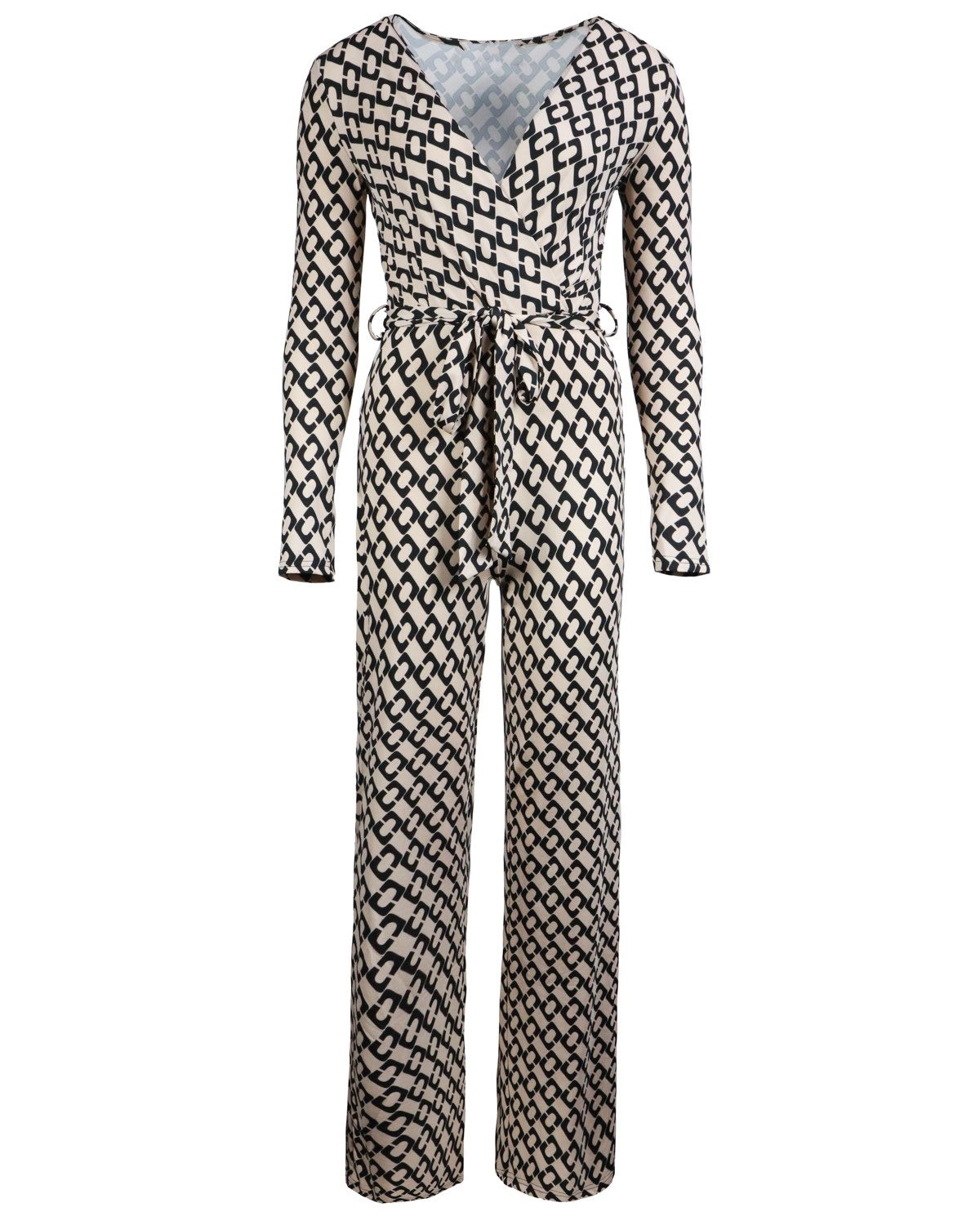 JAIMY Longsleeve chain travel jumpsuit creme/black