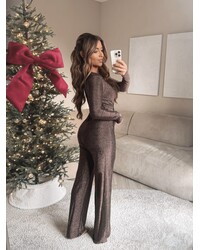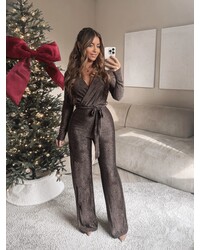 JAIMY Longsleeve sparkle jumpsuit coffee