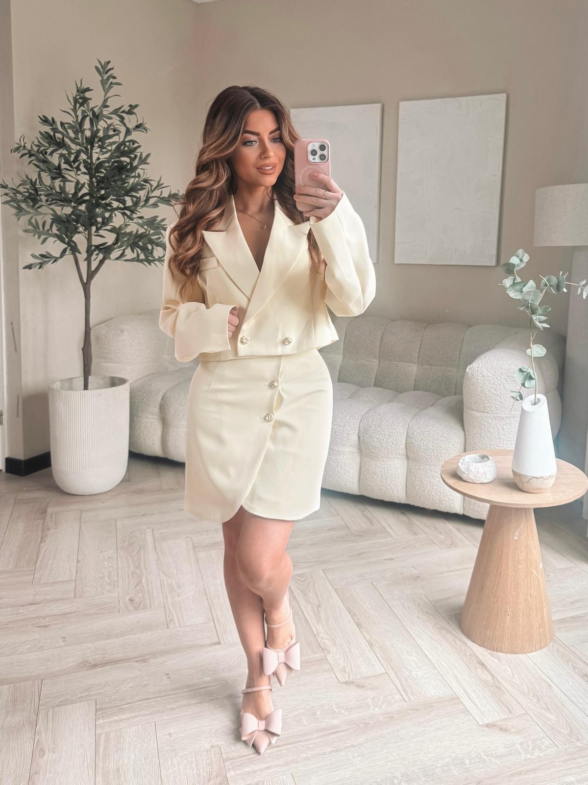 Deze skirt is een tijdloze must-have met een elegante pasvorm en luxe knoopdetails aan de voorzijde. Het model valt mooi aansluitend en zorgt voor een vrouwelijke en verzorgde uitstraling. Maak de look compleet met onze "Louelle cropped blazer"... Lees meer