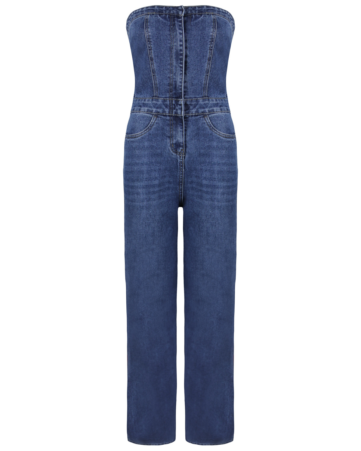 MUSTHAVE ALERT! Een echte musthave, deze strapless denim jumpsuit! Hij heeft een straight fit en blinde rits sluiting. Door de stretch in de stof zit hij ook nog eens heerlijk.... Lees meer