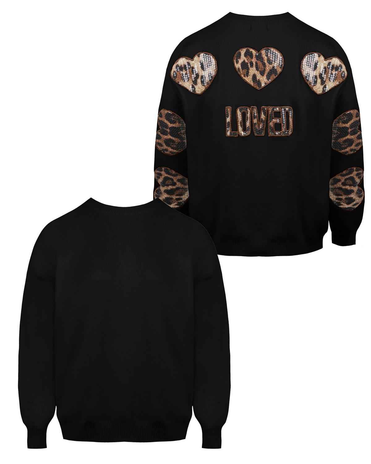 SEQUIN DETAIL! De luipaard print zien we ook dit seizoen overal! De Loved trui heeft meerdere hartjes en de tekst 'loved' in luipaard print. De trui heeft een oversized fit.... Lees meer