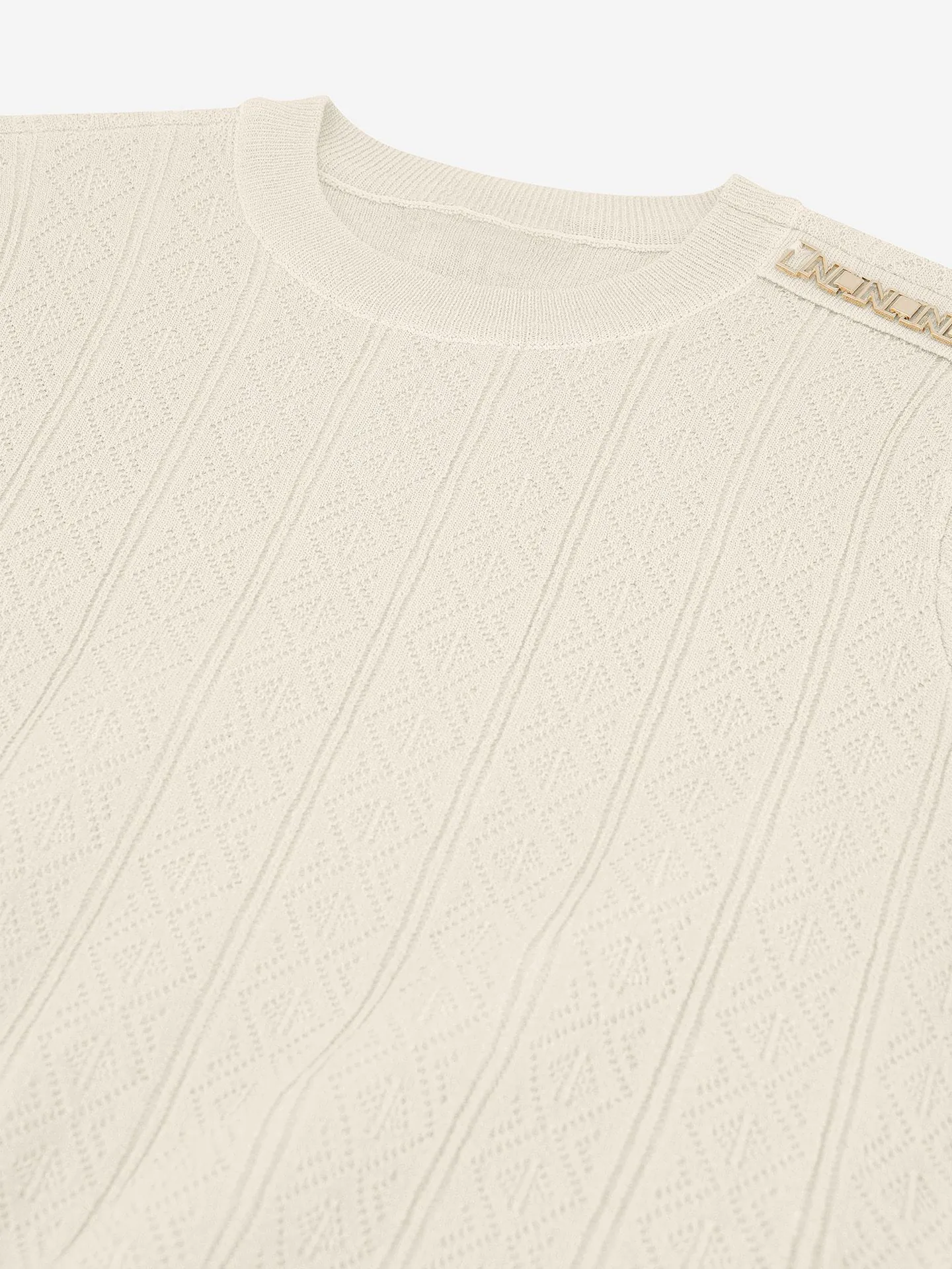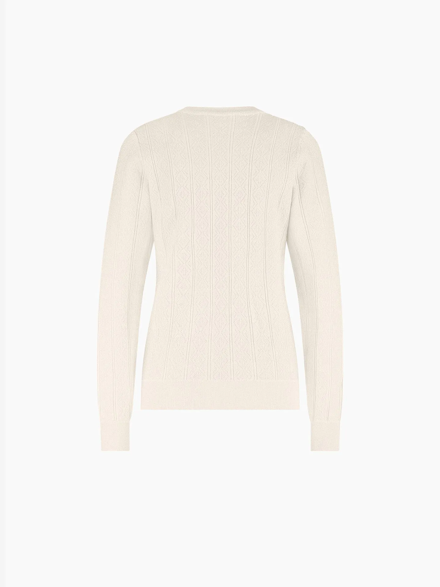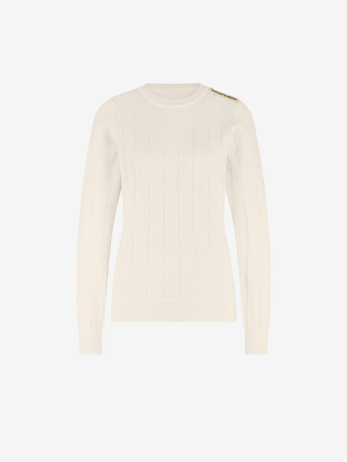 Fijngebreide trui met een ingeweven patroon, een ronde hals en een metalen logo detail op de schouder. De trui is voorzien van geribde boorden en een normale pasvorm.... Lees meer