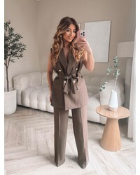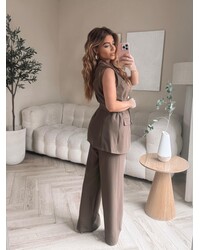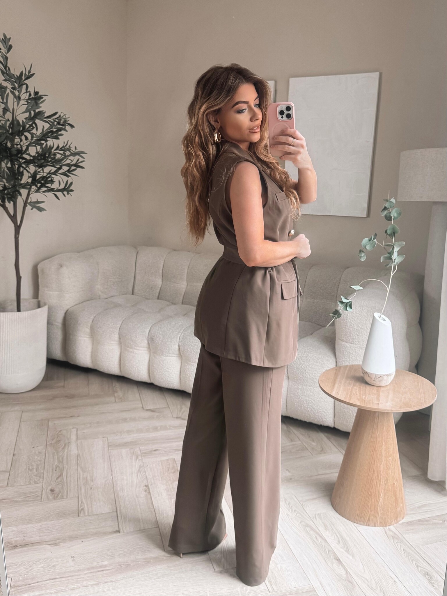 JAIMY Luna Étoile sleeveless gold button blazer choco