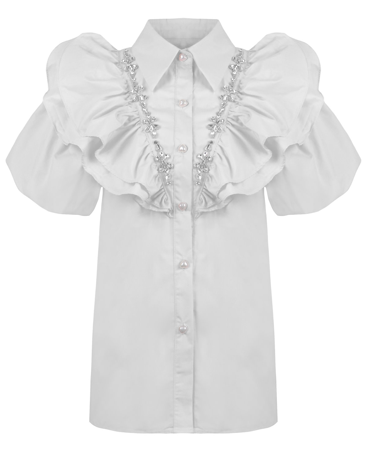 CHIC LOOK! Deze nieuwe blouse heeft diamanten details met een ruffle aan de bovenkant. De knoopjes zijn van parelmoer in hart vorm. Een echte musthave voor jouw garderobe.... Lees meer
