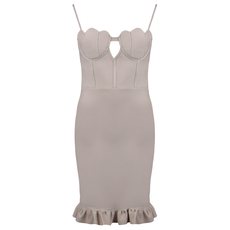 BANDAGE LOVE! De Madison jurk is gemaakt van bandage stof waardoor hij prachtig naar het lichaam vormt. De cups van deze jurk hebben een schelp achtige vorm met een cut out in het midden. Aan de onderkant zit nog een ruffle detail.... Lees meer