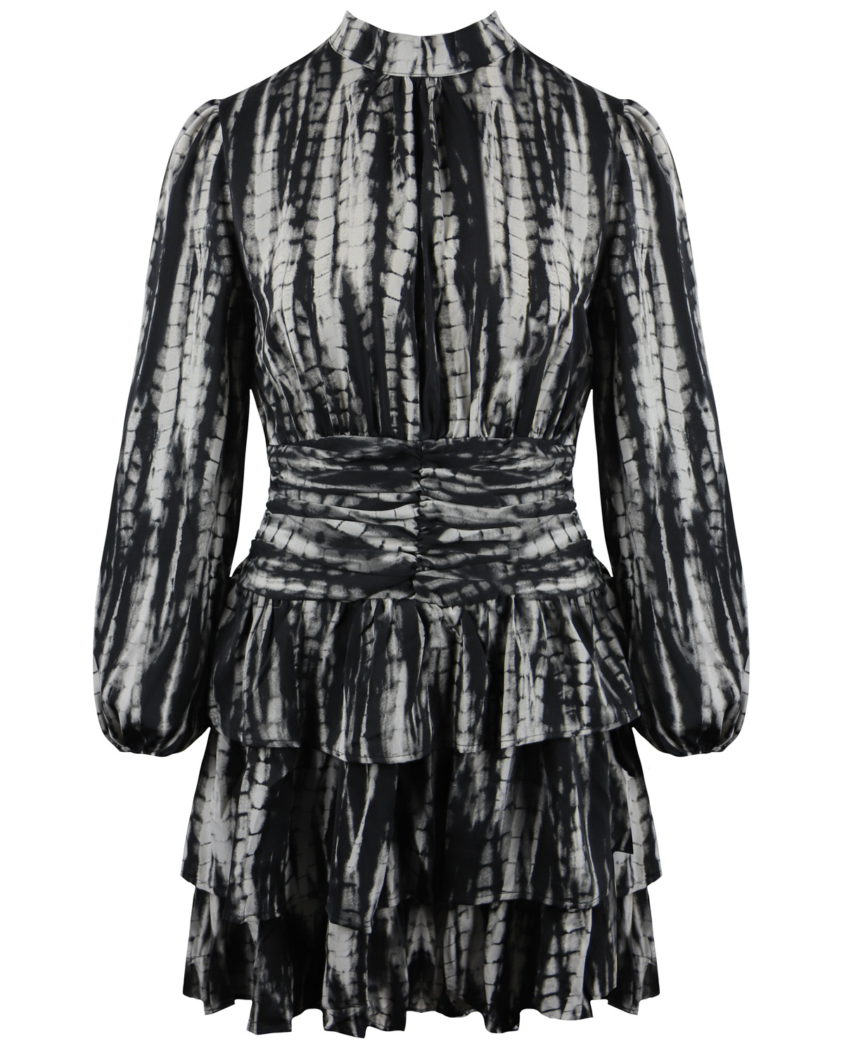 PRINT LOVE! De Margot jurk heeft een prachtige print in zwart witte kleur. De jurk heeft een hoge hals en geplooide details in de taille wat zorgt voor een afslankend effect. Combineer de jurk met high heels of boots om de look af te maken.... Lees meer