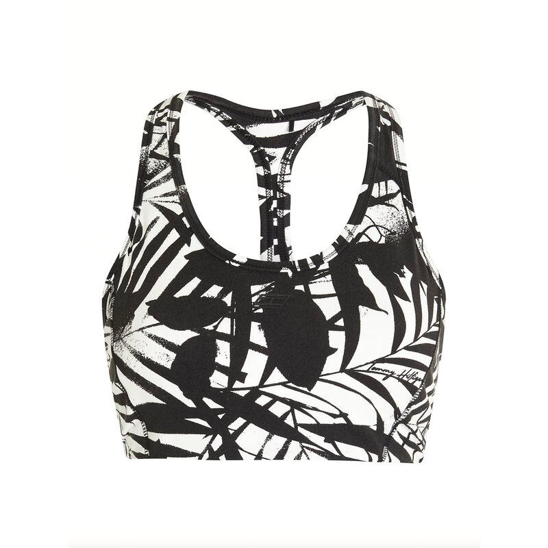 Combineer een sportieve halterrug met een vrouwelijke camo-bloemenprint met deze medium support bh met Tommy Hilfiger cooling-technologie.