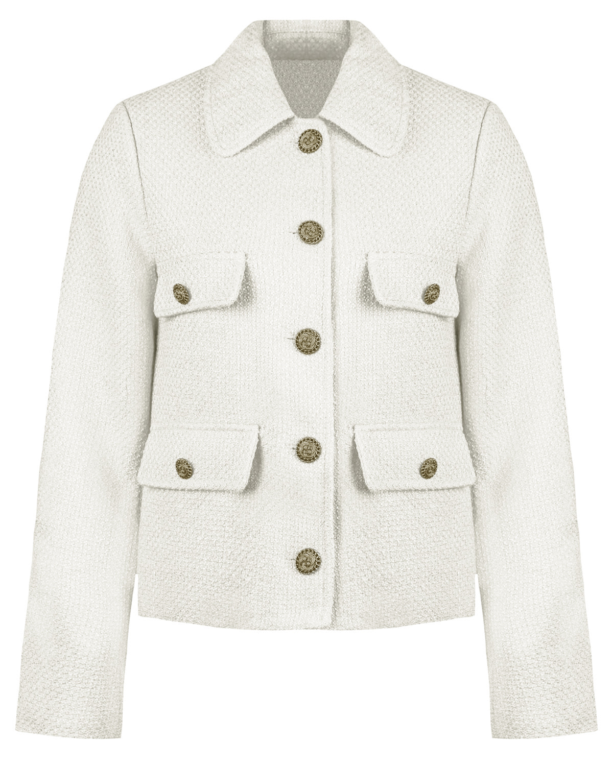 TWEED LOVE! Hoe mooi is deze Miley blazer?! De tweed stof gecombineerd met de gouden knopen heeft een chique look. Deze heeft een langer model, prachtig dicht te dragen of open met een van onze nieuwe tops.
