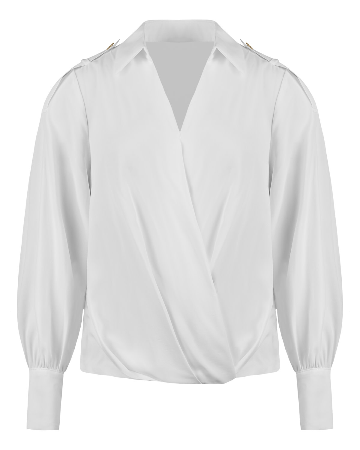 PERFECT BASIC! Deze prachtige Molly blouse kan je eindeloos combineren! De blouse heeft een overslag effect gecombineerd met gouden knoopjes op de schouders. Hoe combineer jij hem?... Lees meer