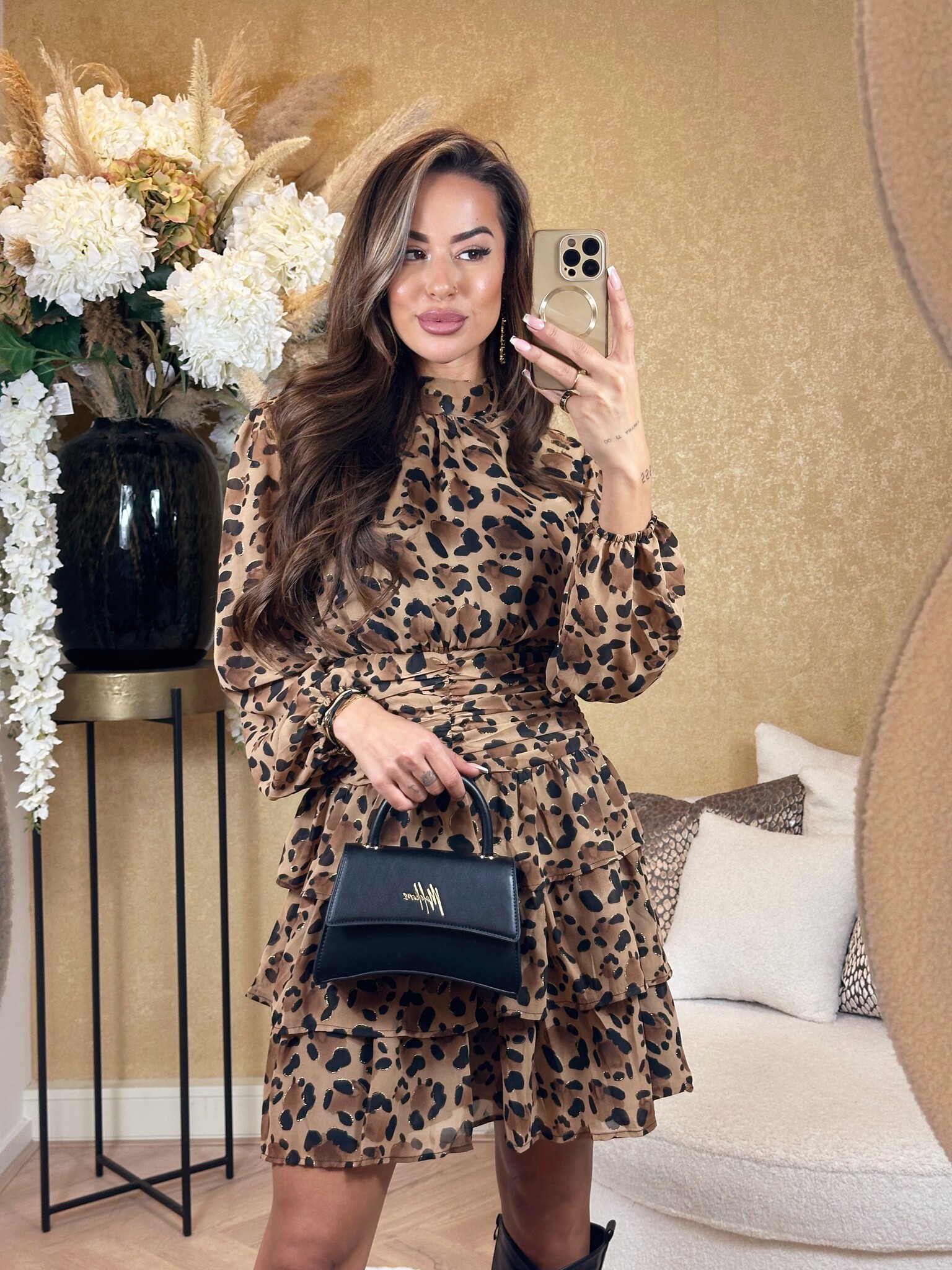 PRINT LOVE! De Molly jurk heeft een prachtige luipaard print. De jurk heeft een hoge hals en geplooide details in de taille wat zorgt voor een afslankend effect. Combineer de jurk met high heels of boots om de look af te maken.... Lees meer