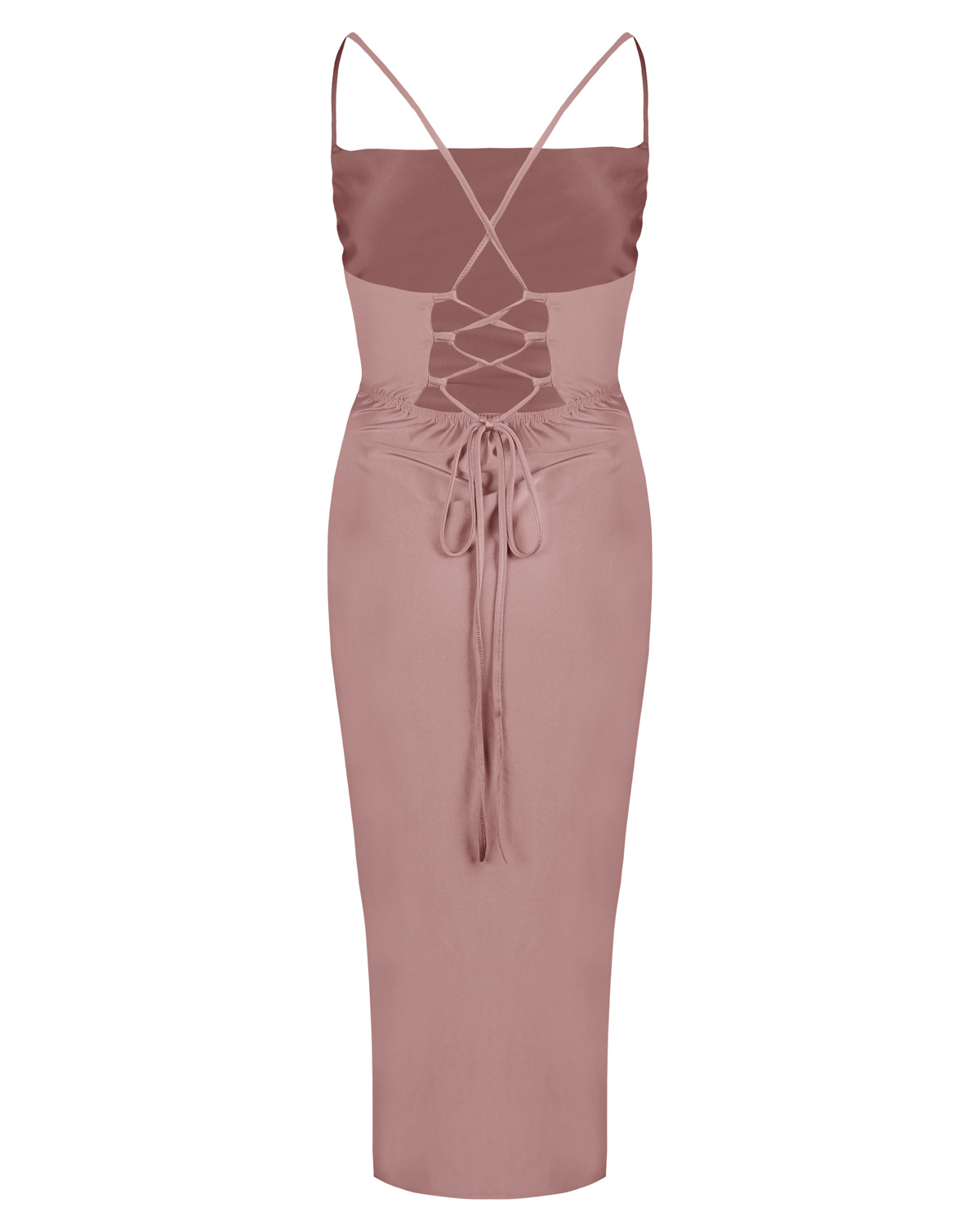 PERFECT WEDDING DRESS! Deze prachtige jurk is perfect voor een bruiloft. De jurk heeft een maxi lengte met een split gecombineerd met een geplooid effect op de heup en een veter detail aan de achterkant.... Lees meer